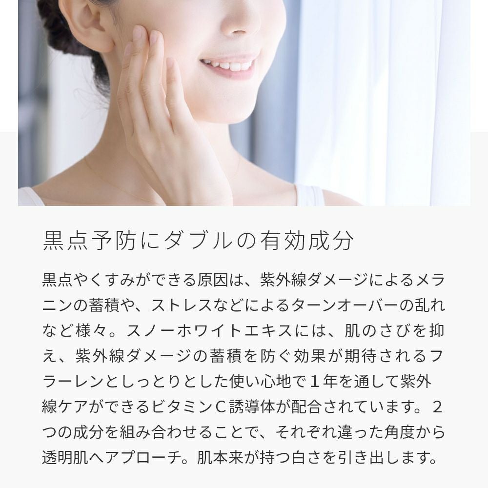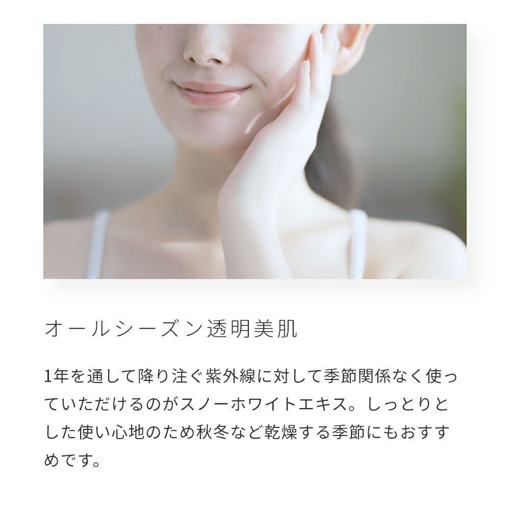 1年を通して降り注ぐ紫外線に対して季節関係なく使っていただけるのがスノーホワイトエキス。しっとりとした使い心地のため秋冬など乾燥する季節にもおすすめです。