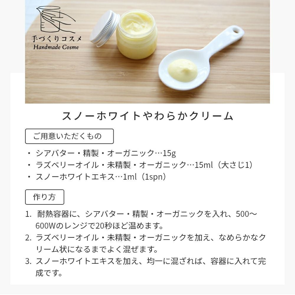 スノーホワイトエキスを加え、均一に混ざれば、容器に入れて完成です。