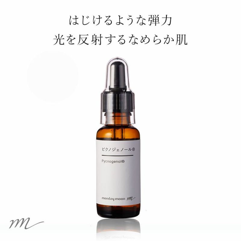 ピクノジェノールフランス海岸松樹皮エキスは体内のビタミンEを酸化から守り、酸化されたビタミンCを還元します。約27時間体内にとどまるため、ビタミンCの効果も相乗効果で延長されます。ビタミンEやCとの合わせ使いにぴったりの成分です。