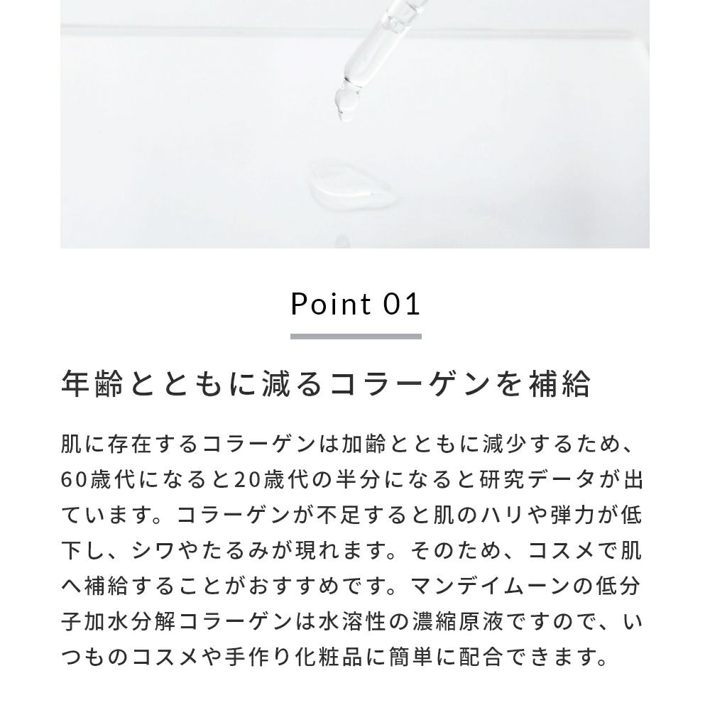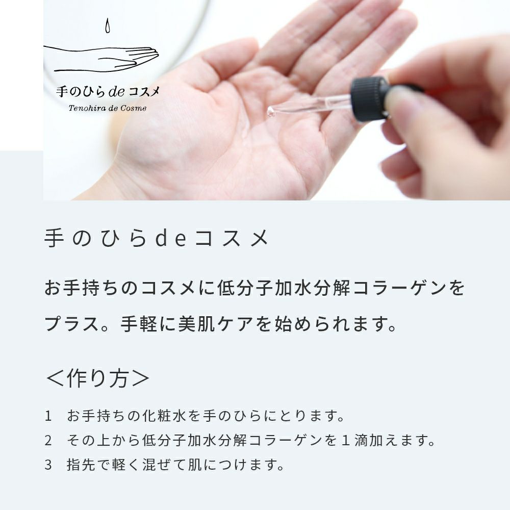 他の画像を見る 肌への高い浸透力。ハリ、キメの整えに効果的。化粧水や美容液、クリームなど手作りコスメ原料に。 【今だけP10倍】低分子加水分解コラーゲン/10ml メール便OK クール便OK 価格 ¥ 1,980 税込 詳細を見る お気に入りに登録する