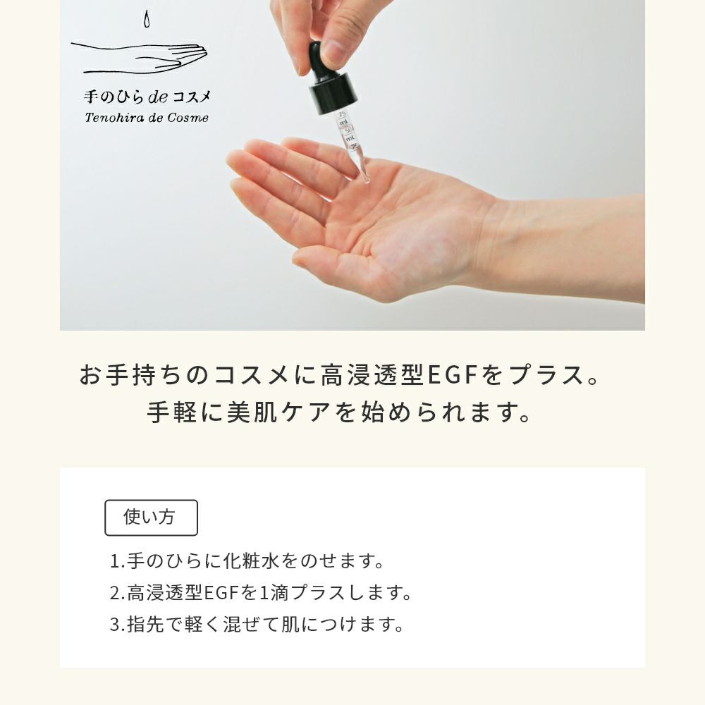 お手持ちのコスメに高浸透型EGFをプラス。手軽に美肌ケアを始められます。