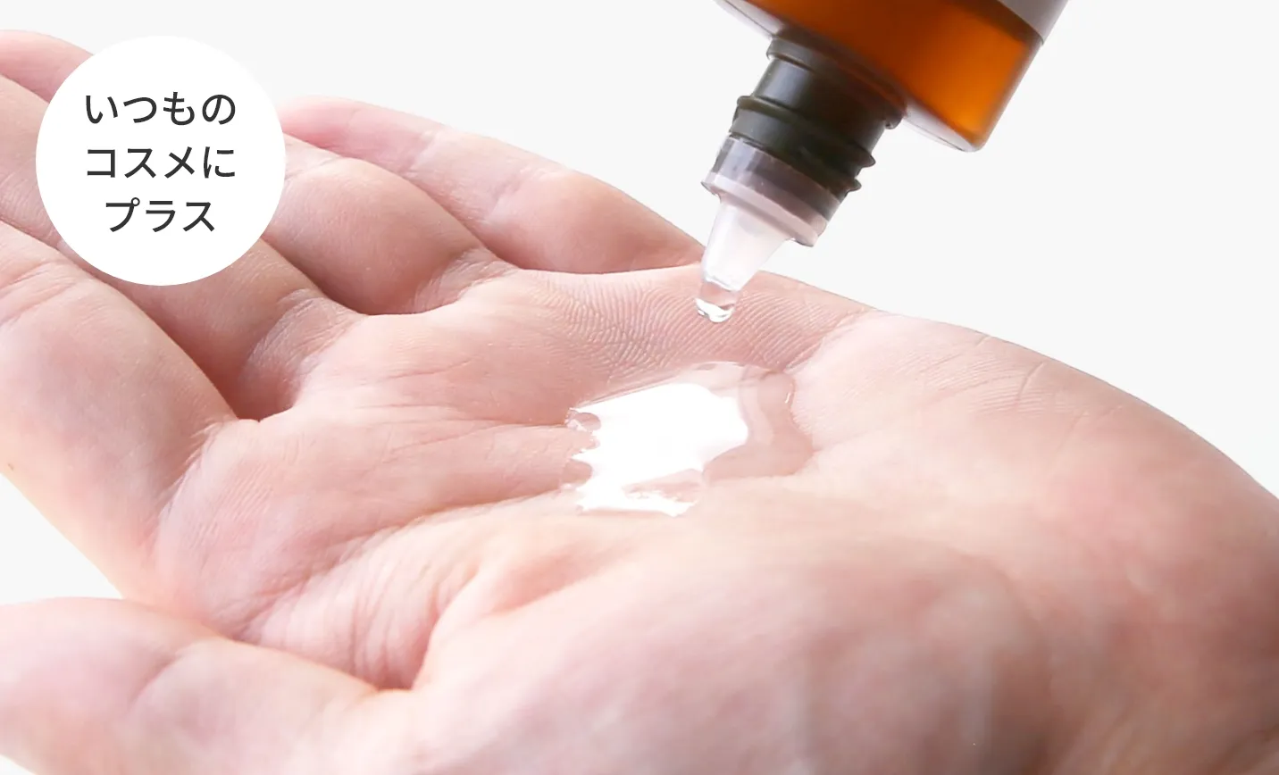 お手持ちの化粧水を手のひらにとります。