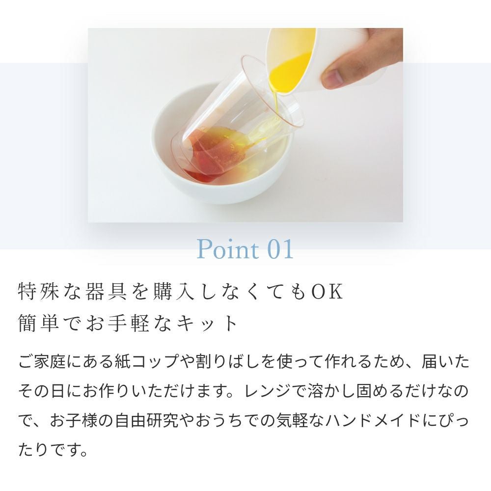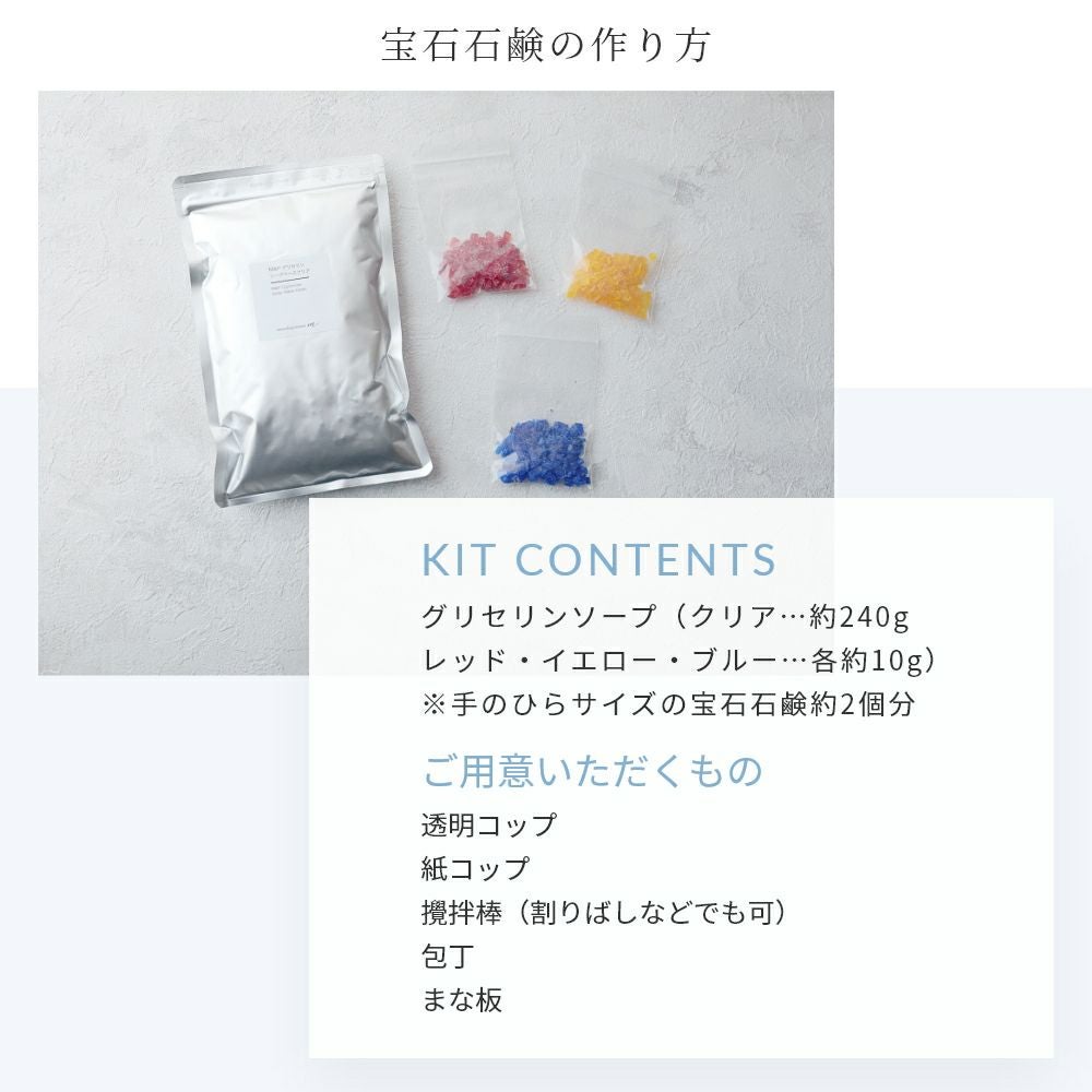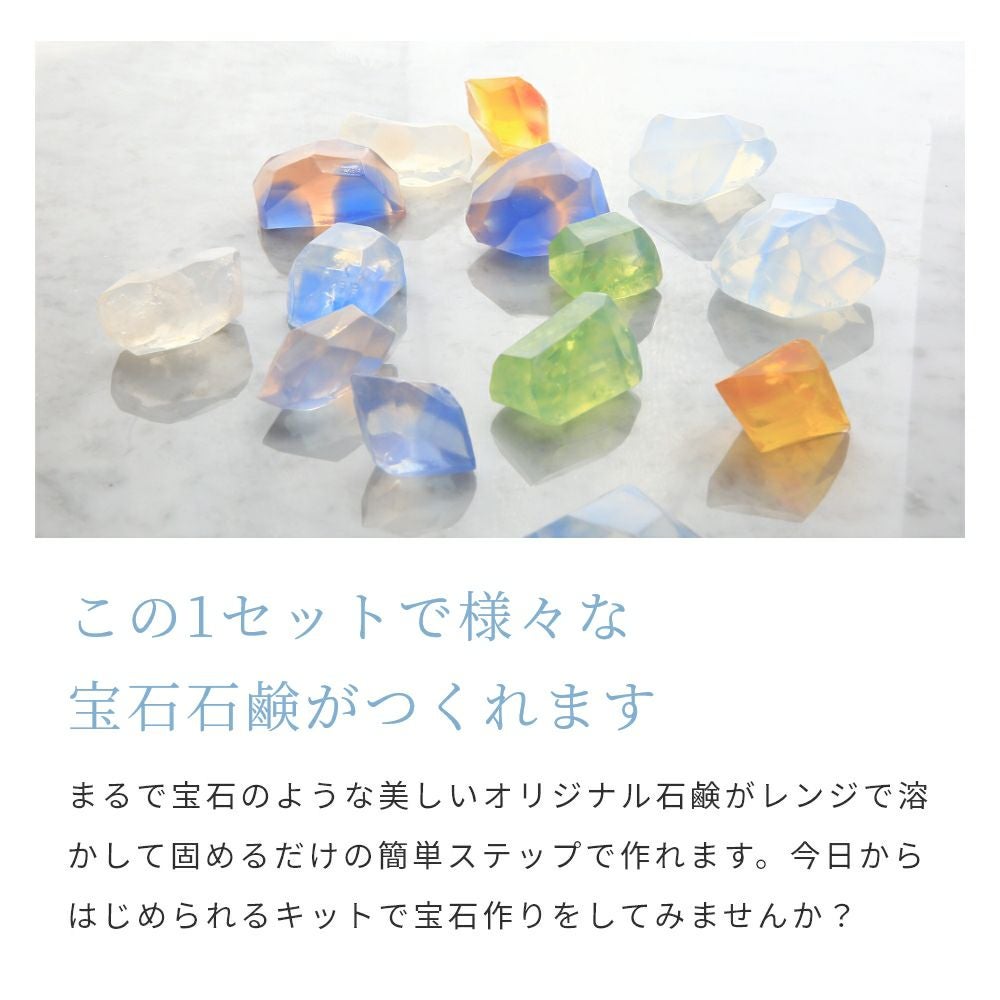 他の画像を見る 簡単!世界でひとつだけの手作り宝石石けん 宝石石鹸キット(クリアソープ+天然カラーソープ3色)/1個テレビで紹介 ZIP! NEWSの全力!!メイキング メール便OK 人気 クール便OK 価格 ¥ 1,320 税込 詳細を見る お気に入りに登録する