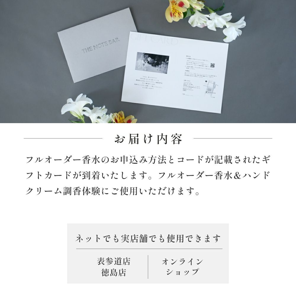 他の画像を見る 香水店THE NOTE BARで使える体験型ギフト券 THE NOTE BAR・パルファムカクテル&ハンドクリーム調香体験ギフト/1枚 クール便OK 価格 ¥ 23,430 税込 詳細を見る お気に入りに登録する