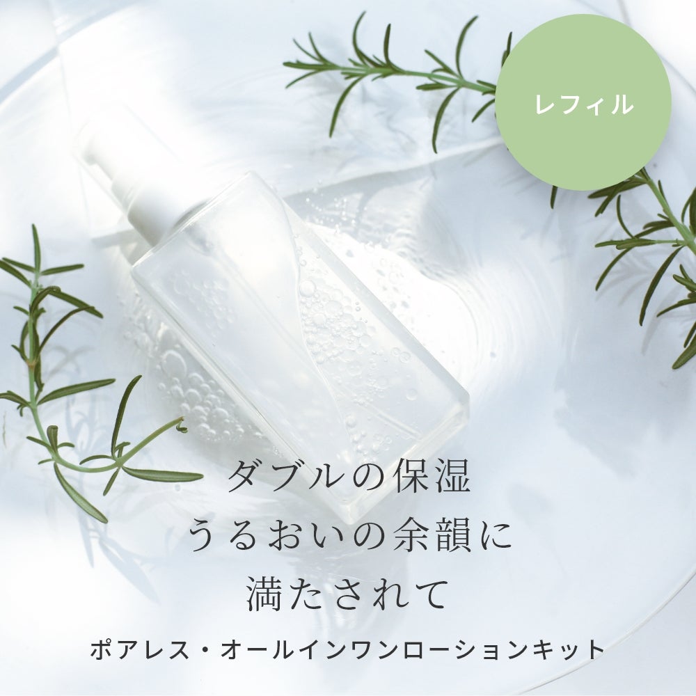 スクワランはもともと肌に含まれているうるおい成分で、みずみずしい肌を作るのに欠かせません。ポアレス・オールインワンローションキットに含まれるスクワランは、サトウキビ由来のやさしい成分なので敏感肌の方でも安心してお使いいただけます。