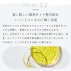 天然のシリコンと呼ばれるブロッコリーオイルが髪をダメージから保護し、指通りのよいサラサラ感を与えます。また、山茶花オイル(ユチャ油)が頭皮を健やかに保ち、保湿・エイジングケア効果を兼ね備えたアルガンオイルが、ツヤのある、しっとりまとまる髪へと導きます。
