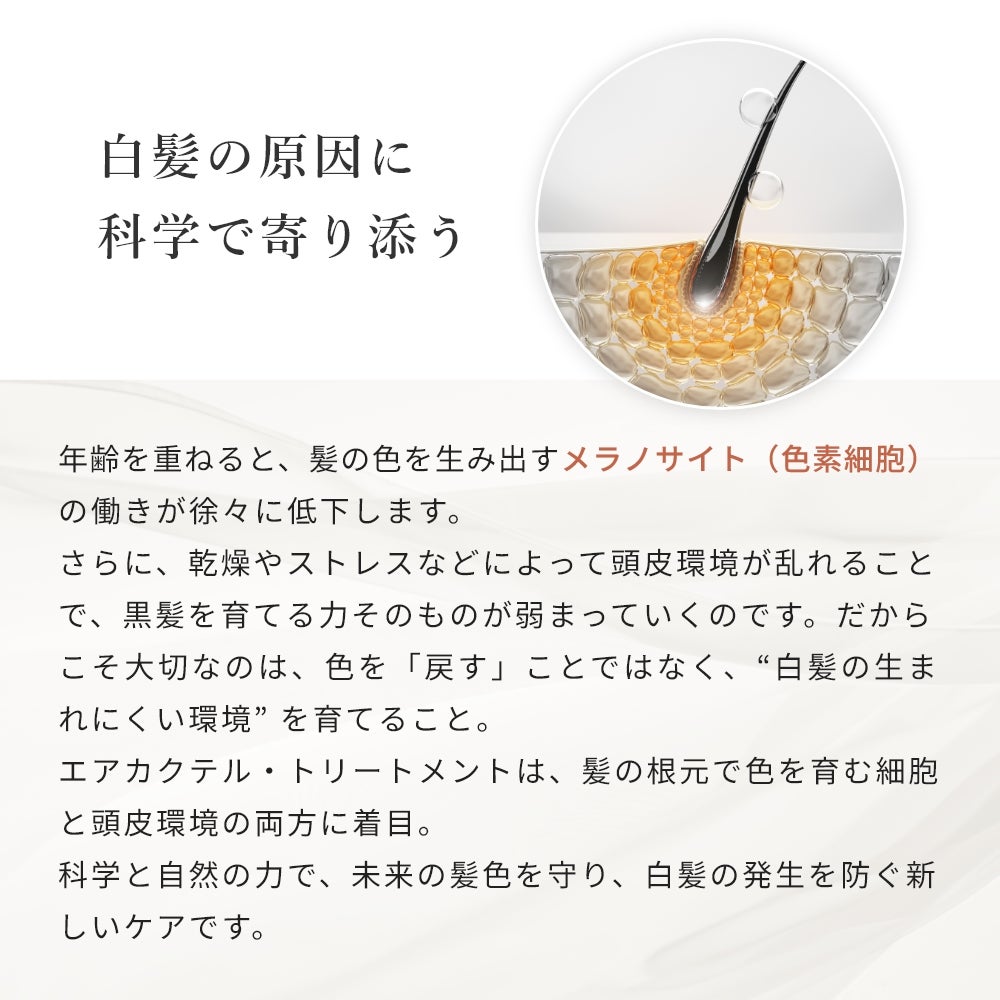 他の画像を見る 白髪専用高級ケア成分“メラチン”配合で黒く美しい髪へ 【30%OFFクーポン使用可能】エアカクテル トリートメント/227g NEW SALE クール便OK 価格 ¥ 2,970 税込 販売期間 2026/02/19 11:00 〜 2026/03/02 11:00 カートに入れる お気に入りに登録する