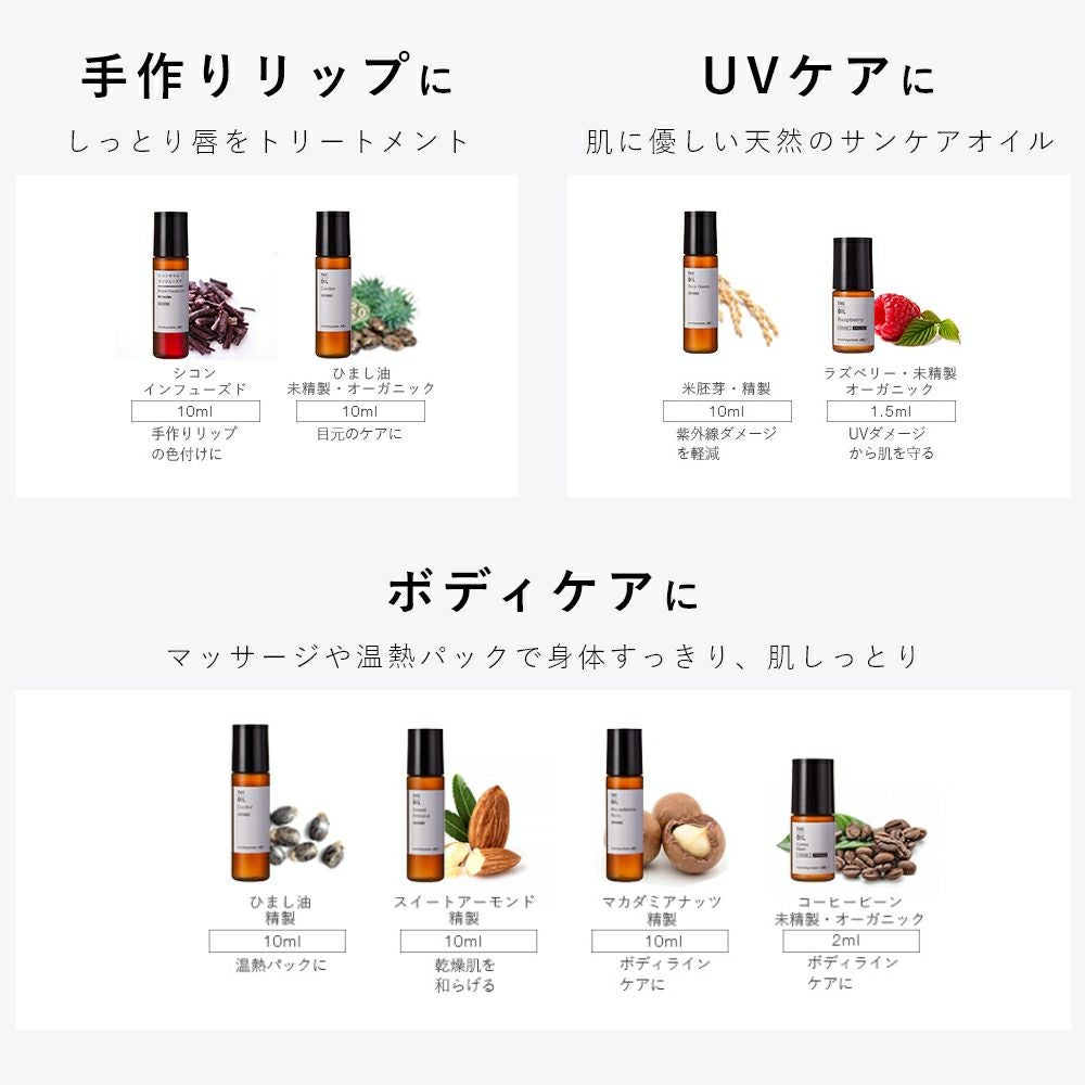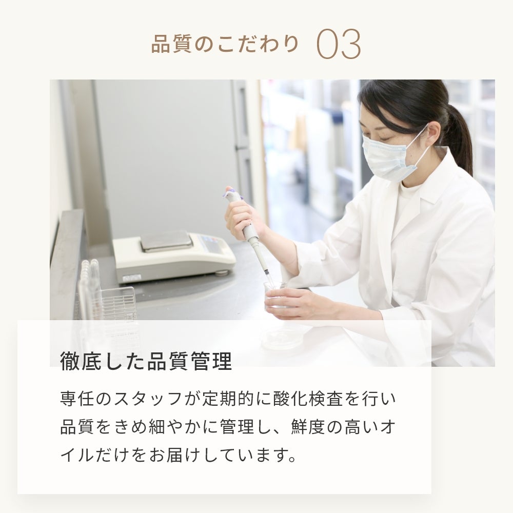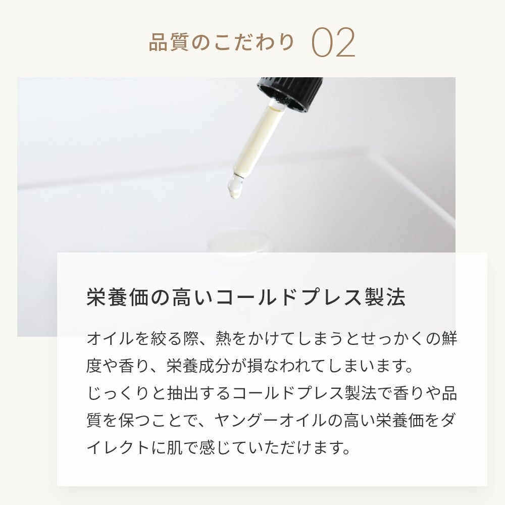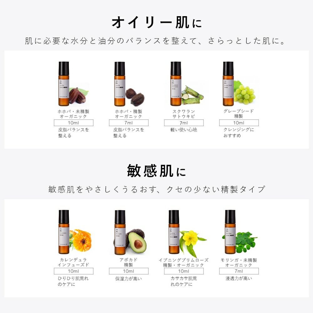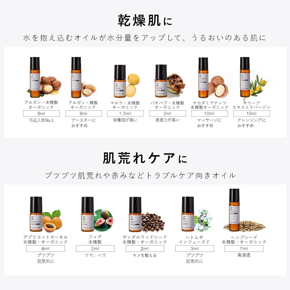 植物の葉や実から抽出した100%天然オイルアルガン、オリーブなど、植物の葉や実から抽出した100%天然オイルです。抗酸化成分や必須脂肪酸、ビタミン、ミネラル等、肌や髪に大切な成分を豊富に含んでいます。そのままで贅沢な美容オイルとして、組み合わせれば他の成分の浸透を助ける働きもあります。