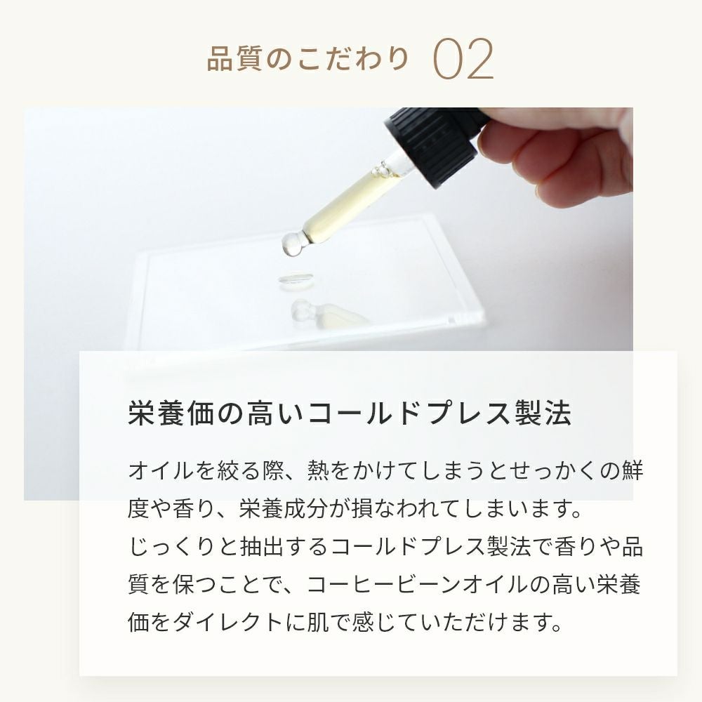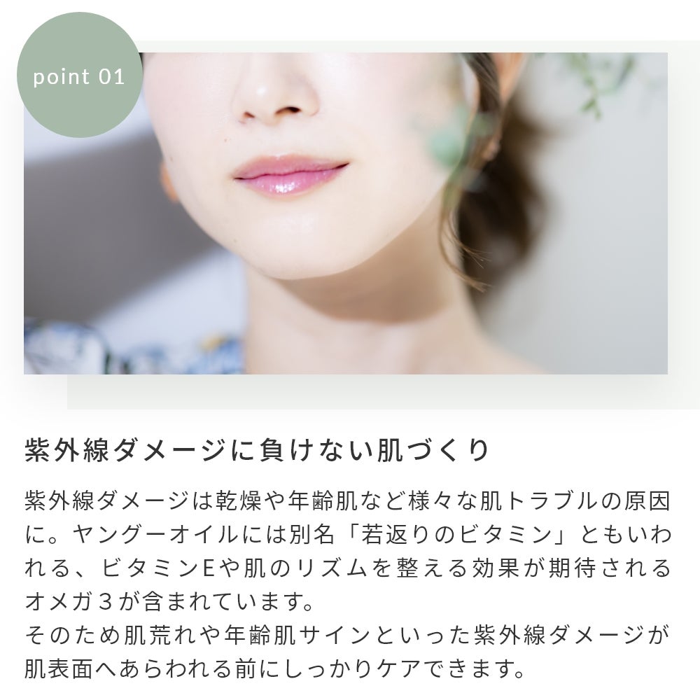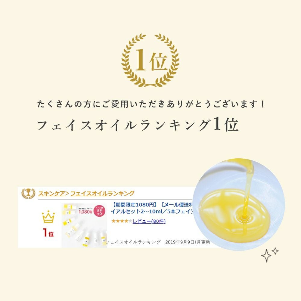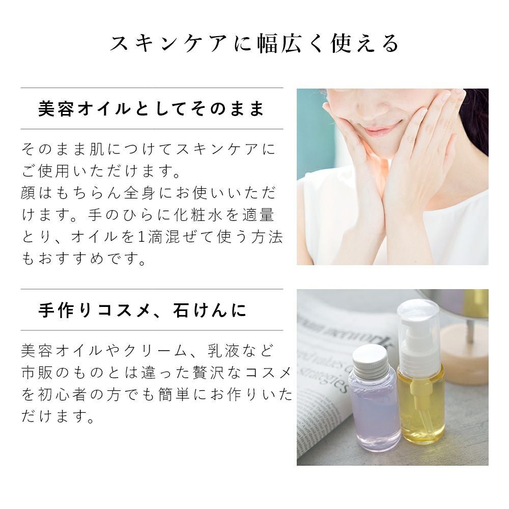 美容オイル 洗顔後の清潔な肌に2~3滴のオイルを顔全体にうすくのばします。化粧水の前につけるとブースターにもなります。