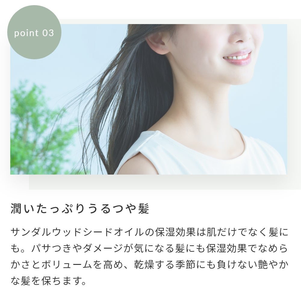 ヘアオイル 2~3滴のオイルを手のひらによくなじませてから、毛先を中心につけます。