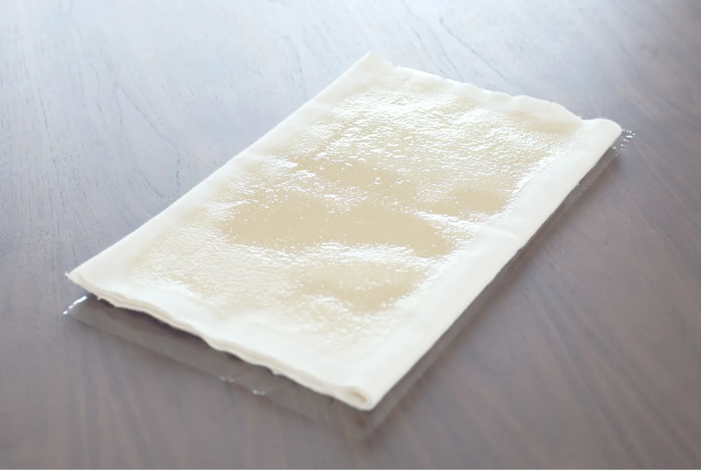 湿布はそのまま繰り返し使えます。夏場は3週間くらい、その他の季節は2カ月くらい。使っているうちに湿布の表面が白っぽく乾いてきたら、上からひまし油を継ぎ足してください。