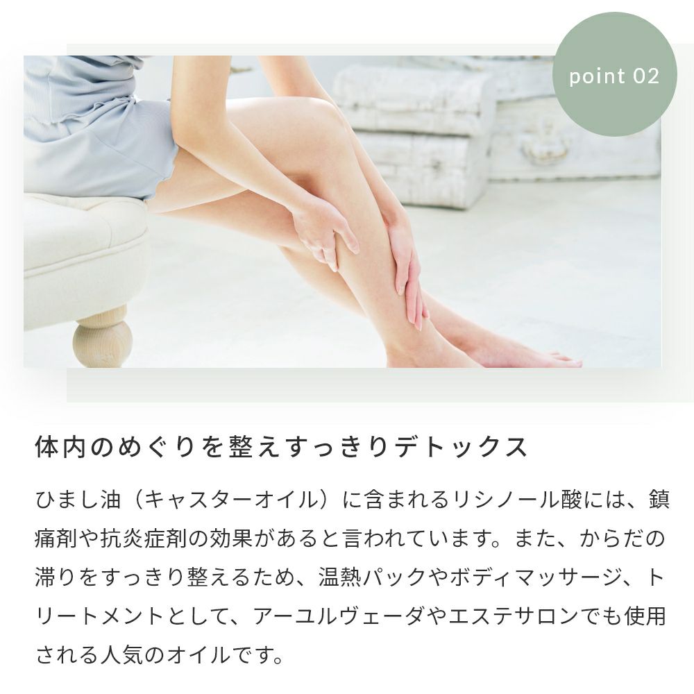• ボディオイル 清潔な肌にたっぷりのオイルをつけてのばします。