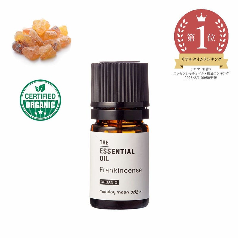 マンデイムーンのフランキンセンス・エッセンシャルオイル・オーガニックは、インドで持続可能な方法で有機栽培されたフランキンセンス(Boswellia serrata)の樹脂から抽出しました。