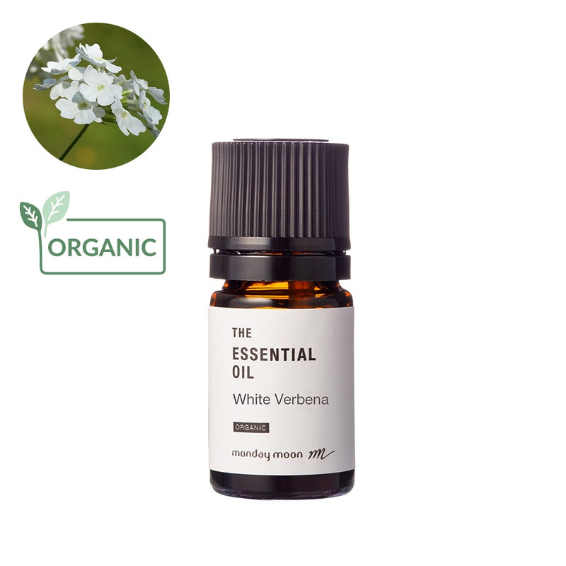 マンデイムーンのホワイトバーベナエッセンシャルオイルは、ホワイトバーベナ(リッピア・アルバ)から蒸留して得られます。非常に少量しか生産できないエッセンシャルオイルで、葉と花芽から抽出される希少なエッセンシャルオイルです。ホワイトバーベナ(リッピア・アルバ)の葉には、様々な効果があり、ホワイトバーベナ(リッピア・アルバ)エッセンシャルオイルには、カルボン、ピペリトン、タゲテノン、シトラールが豊富に含まれています。