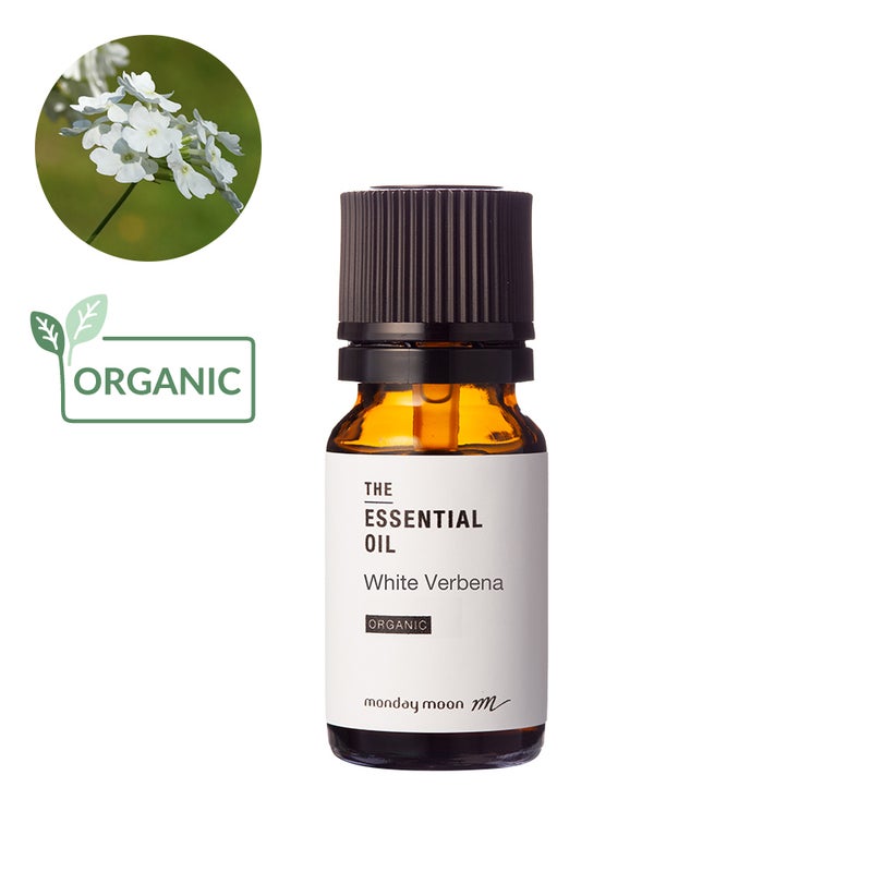 マンデイムーンのホワイトバーベナエッセンシャルオイルは、ホワイトバーベナ(リッピア・アルバ)から蒸留して得られます。非常に少量しか生産できないエッセンシャルオイルで、葉と花芽から抽出される希少なエッセンシャルオイルです。ホワイトバーベナ(リッピア・アルバ)の葉には、様々な効果があり、ホワイトバーベナ(リッピア・アルバ)エッセンシャルオイルには、カルボン、ピペリトン、タゲテノン、シトラールが豊富に含まれています。