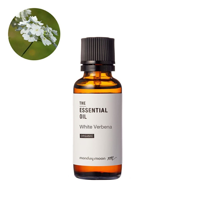 マンデイムーンのホワイトバーベナエッセンシャルオイルは、ホワイトバーベナ(リッピア・アルバ)から蒸留して得られます。非常に少量しか生産できないエッセンシャルオイルで、葉と花芽から抽出される希少なエッセンシャルオイルです。ホワイトバーベナ(リッピア・アルバ)の葉には、様々な効果があり、ホワイトバーベナ(リッピア・アルバ)エッセンシャルオイルには、カルボン、ピペリトン、タゲテノン、シトラールが豊富に含まれています。