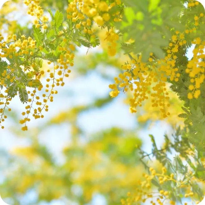 レモンイエローの花が、まだ冷たい空気に春の兆しを灯します。フルーティでみずみずしく、やがて粉雪のようにやわらかな甘さへ。香りの立ち上がりから余韻までが美しく、ブレンドの“芯”となる存在です。