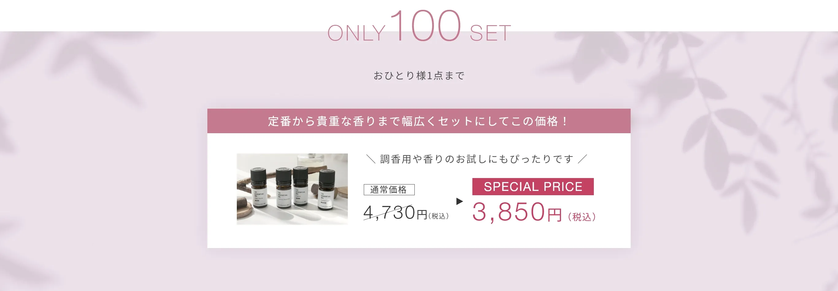 マンデイムーンの312種のエッセンシャルオイルの中から香りで季節を感じていただける4種をピックアップしてセットにしました。