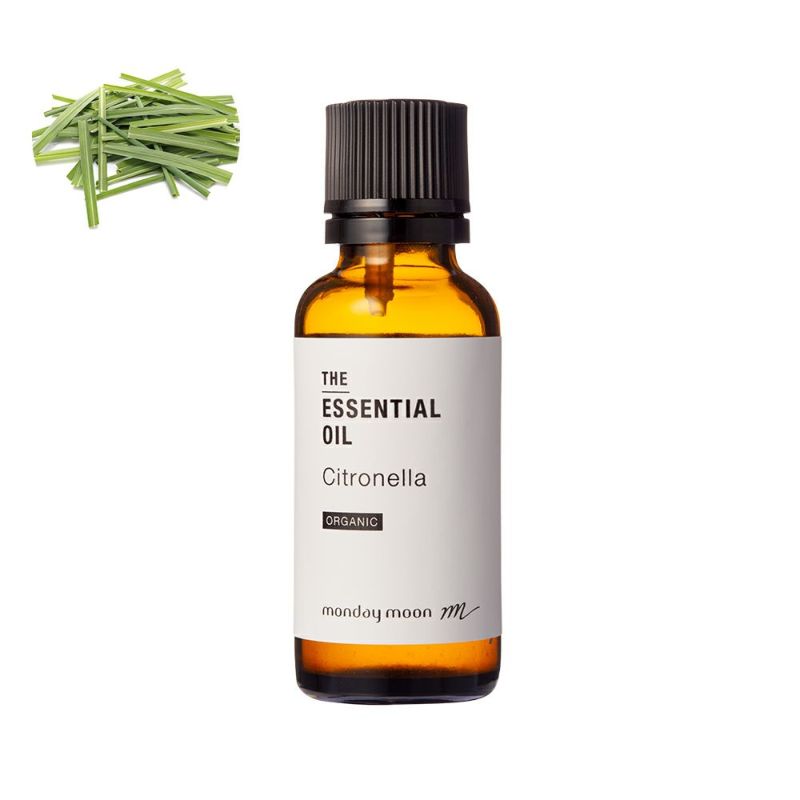 マンデイムーンのシトロネラ・エッセンシャルオイル・オーガニックは、インドネシアで持続可能な方法で栽培されたシトロネラ(Cymbopogon winterianus)の葉から抽出しました。