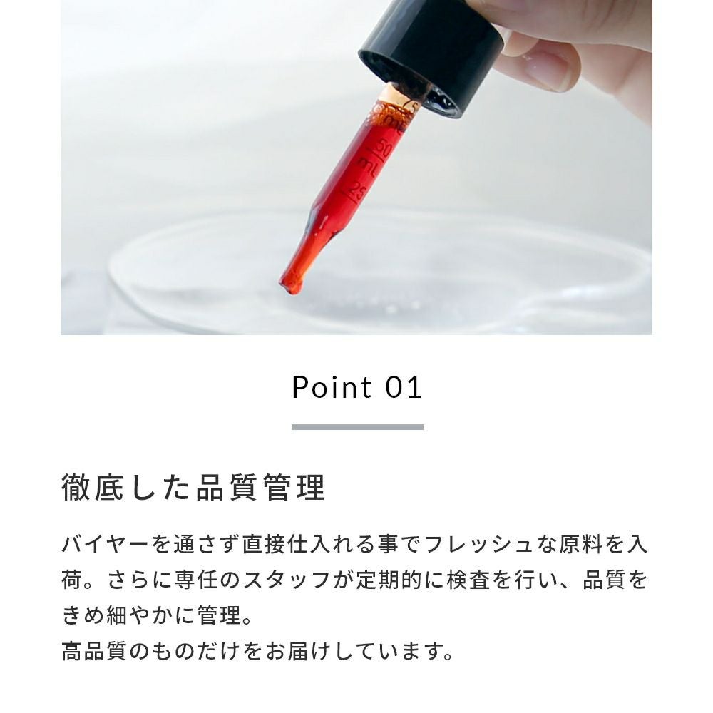 バイヤーを通さず直接仕入れる事でフレッシュな原料を入荷。さらに専任のスタッフが定期的に検査を行い、品質をきめ細やかに管理。高品質のものだけをお届けしています。