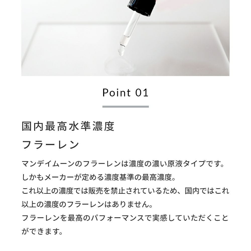 フラーレンマンデイムーンのフラーレンは濃度の濃い原液タイプです。 しかもメーカーが定める濃度基準の最高濃度。