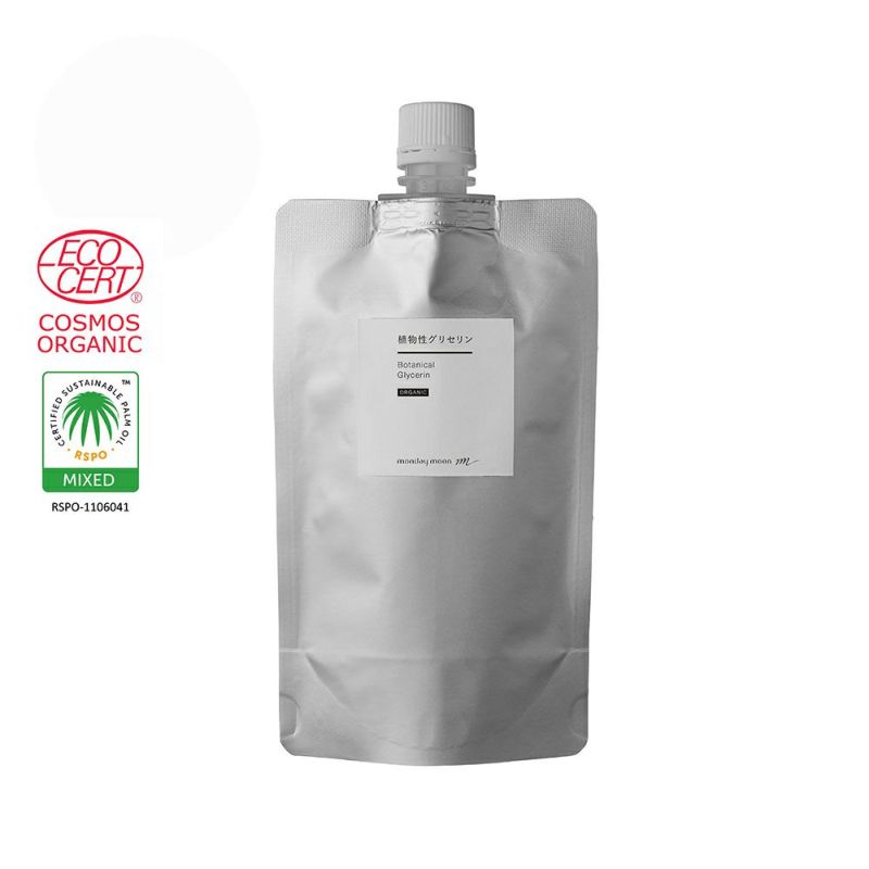 一般的なグリセリンは精製水などで希釈されていますが、マンデイムーンでは希釈前の濃グリセリンを販売しています。濃グリセリンとは濃度が95%以上のグリセリンのことで、少量でしっかりと保湿効果をプラスできます。とろみがあり、しっとりとした上質な使い心地が特徴です。