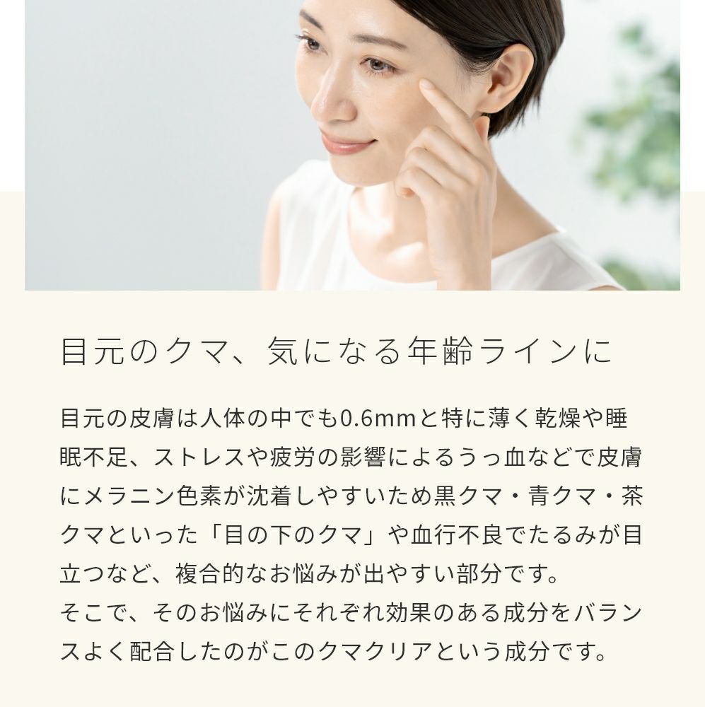 他の画像を見る 目元ケアに特化した美容成分、乾燥や血行不良による黒クマ・青クマ・茶クマケアに クマクリア/3ml メール便OK クール便OK 価格 ¥ 1,430 税込 詳細を見る お気に入りに登録する