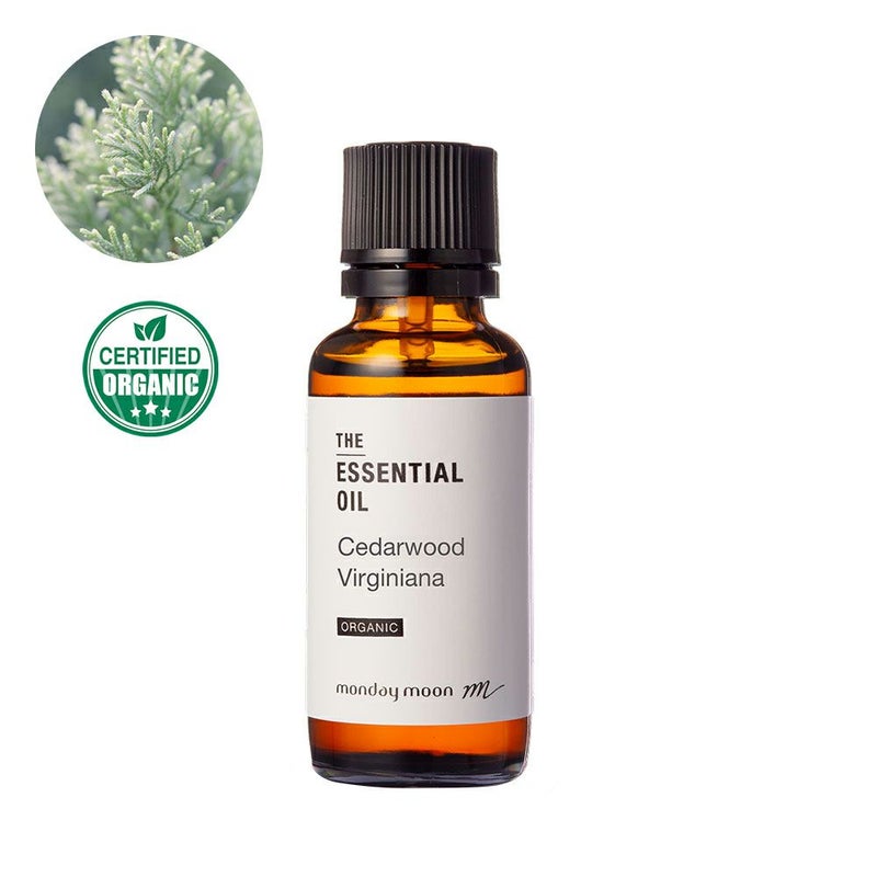 マンデイムーンのシダーウッドバージニア・エッセンシャルオイル・オーガニックは、アメリカの野生のジュニパス・ヴァージニアナ(Juniperus virginiana)の木材から抽出しました。