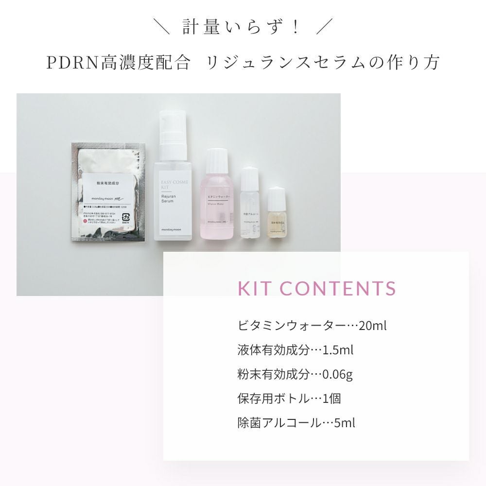 他の画像を見る 話題の再生美容成分で透明感とハリのある肌。PDRN美容液。 PDRN高濃度配合 リジュランスセラム フルセット 手づくりコスメキット/1個 20%OFF NEW メール便OK クール便OK 当店通常価格 ¥ 1,870 (税込)のところ 価格 ¥ 1,496 税込 販売期間 2026/03/04 11:00 〜 2026/03/11 11:00 詳細を見る お気に入りに登録する