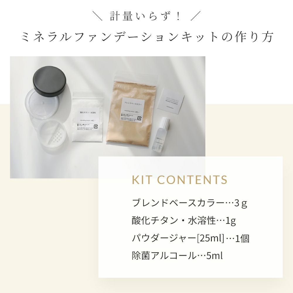 他の画像を見る 手作りコスメキット。簡単にできる初心者向け。石鹸オフできる天然材料のナチュラル化粧品。 ミネラルファンデーションキット -パウダージャータイプ-/1個 メール便OK 15%OFF クール便OK 当店通常価格 ¥ 1,320 (税込)のところ 価格 ¥ 1,122 税込 販売期間 2026/03/04 11:00 〜 2026/03/06 11:00 在庫切れ 詳細を見る お気に入りに登録する